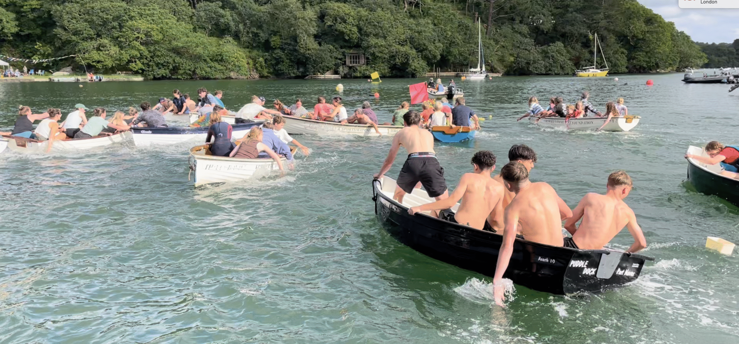Starts 3pm with the first race, The Beattie School Cup – a 4 part relay race between Constantine and Mawnan Smith Primary Schools. Mawnan 1-0 up.